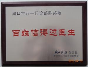 由全军著名内科专家-陈邦敬教授亲自坐诊,愿以精湛一流的医疗技术、真码实价的药物,军医专家级的诊治水平,热情周到的服务,为广大患者诊断治疗。周口市八一专家门诊部--是由沈阳军区著名心脑血管病专家--陈邦敬教授退休还乡创办。经省市、县三级政府验收合格批准的一所集心脑血菅病专科、特效结肠炎治疗专科、鼻炎专科及由陈邦敬教授研制发明---经国家知识产权局批准的首席发明专利技术“体外震波排石机”,专治肾结石及输尿管结石、胆结石排石为中心的特色专科医院。