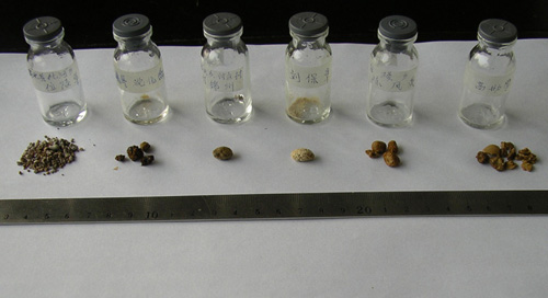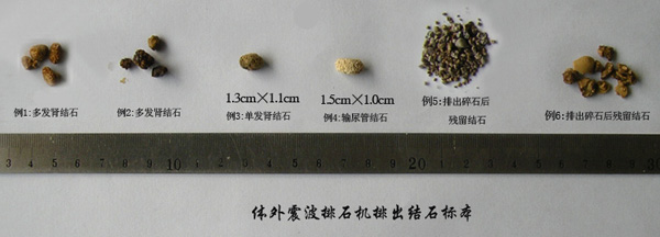 体外震波排石机排出结石标本 |
